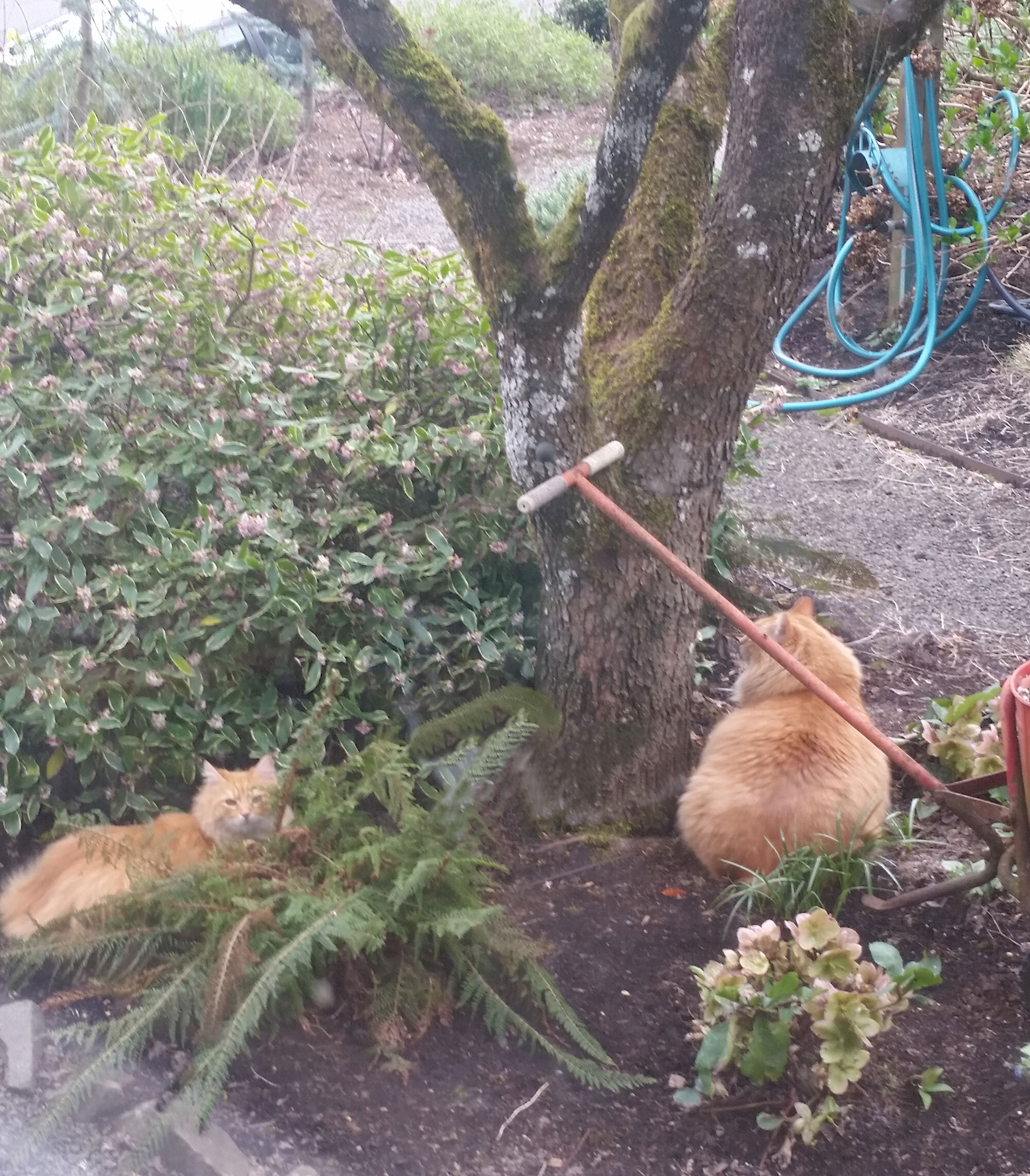 When living with cats there are always those moments when you don't have your camera handy. You just have to watch and enjoy. This happened one day out in the yard with Tucker and Pete. If you haven't checked my other blog posts about these two, I will just say they were two litter brothers that were full on orange. If you ever have had an orange cat you know exactly what I mean.